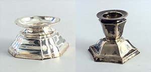 1 Paar Kerzenleuchter, Silber 835/000 & 925/000, H = 54 & 67 mm, Füße Kitt gefüllt