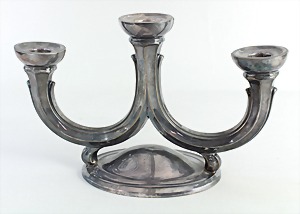 Kerzenleuchter 1930er Jahre, Silber 850/000, dreiarmiger Leuchter mit ovalem Fuß, gradliniges 6-eckiges Design, H = 12 cm, B = 26,5 cm, total 214 g