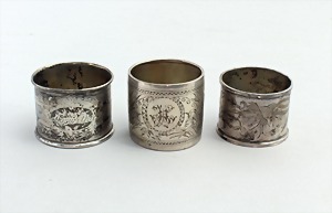 Lot: Serviettenringe 3 Stück, JUGENDSTIL um 1900, Silber 800/000 teilweise mit Monogramm / Namensgravur, total 85 g