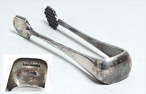 Zuckerzange, MOSKAU dat. 1877, 84 Zolotnik, Beschaumeister Moskau: Chlebnikow, Iwan Petrowitsch ( Hoflieferant, bedeutender Silberschmied), schwer gearbeitete Zuckerzange mit Waffelmuster, L = 12,5 cm, total 51 g