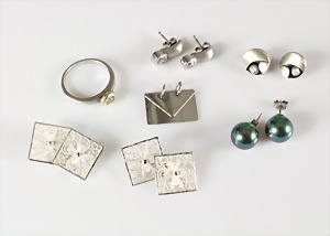 Lot 10 Teile, 1 Ring, GG 585/000, hellblauer Stein; 1 Ring, GG 333/000, grüner Stein; 1 Ring, GG 375/000, zentraler blauer Stein, alle 3 Ring RW ca. 53,5; 1 Ring, WG/GG 585/000, 1 Brillant ca. 0,04 ct weiß, RW ca. 49,5; 1 Anhänger, GG 585/000, 7 violette Steine in Navetteform, H = 25,5 mm; 1 Anhänger, GG 333/000, "HERZ", H = 28,5 mm; 1 Anhänger, GG 333/000, 19 blaue Steine, H = 27,5 mm; 1 Anhänger, GG 375/000, blauer runder Steine, H = 18,5 mm; 1 Anhänger, GG 333/000, 17 grüne Steine, H = 20,5 mm, Schlaufen teilweise zum Öffnen; Ohrhänger, GG 585/000, grüne Steine, H = 24 mm,