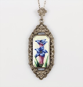 Anhänger "ENZIAN" 1920/30 Jahre, Silber 835/000, feines, transluzides Emaille, H = 61,0 mm; Kette, Silber, L = 45,0 cm