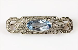 Lot Granatschmuck um 1880/1900, Tombak: 1 ovale Brosche als Medaillon gearbeitet (Glas fehlt), L = 39,7 x 33,0 mm (1 Stein fehlt); 1 Nadel, L = 68,3 mm
