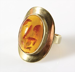Bernsteinring "BUTTERSCOTCH", RG 585/000, Bernstein D = 14,6 mm, RW ca. 53, total 10,4 g
