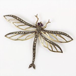 Brosche "KUTSCHE mit PFERD" 1930/40er Jahre, Silber 835/000, Markasiten, 39,5 x 17 mm
