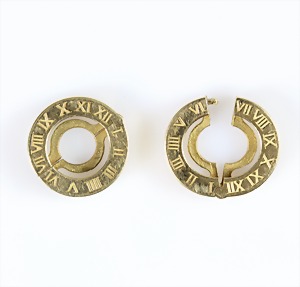 1 Paar Ohrclips aus den 1960er Jahren, GG 585/000, 6 Akoja-Perlen, blätterartige Form mit geschweißter Oberfläche, H =25,5 mm, (Omegamechanil)