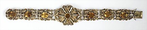 Armband, "SIEBENBÜRGEN" um 1870/80, Silber (geprüft) teilverg., sig.: LS, Krone (Symbol), facettierte Citrine u. aufgereihte Naturperlen, integriertes Kastenschloss, L = ca. 19 cm