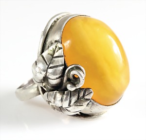 Ring Bernstein "BUTTERSCOTCH", Silber 925/000, Ringkopf ca. 26,2 x 23,2 mm, RW ca. 54