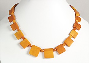 Kette, Bernstein "BUTTERSCOTCH", Drehschließe, kleine Bernsteinoliven u. flache Quader, vorne ca. 18,5 x 17,5 mm, L = 41,5 cm, total 17,4 g,