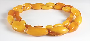 Bernsteinkette, "BUTTERSCOTCH", Oliven D = 6,5 x 13,1 mm, vordere Olive 18,6 x 13,1 mm, L = 51 cm, Schließe später !, total 20,3 g