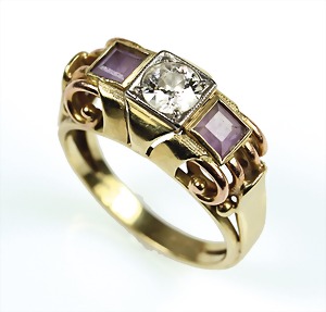 Brillant-Ring 1920/30er Jahre, GG 585/000, Altschliff-Diamant ca. 0,60 ct w-p, RW ca. 56,5