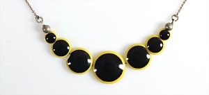 Collier, "ART-DECO" der 1930/40er Jahre, Metall, Bakelit/Galalit, gelb u. schwarze Kreiselemente, vorne D = 20 mm, L = 40,5 cm