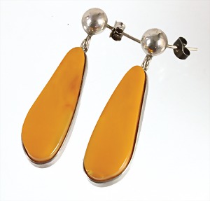 Ohrhänger, Bernstein "BUTTERSCOTCH", Silber (geprüft), Bernstein in Tropfenform, Abschluß Kugel mit Stift, H = 52,2 mm, total 13 g,