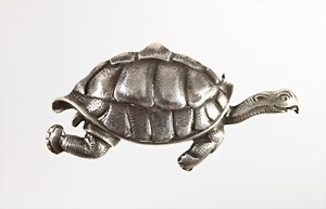 Brosche, "SCHILDKRÖTE" Mitte 20.Jhd., Silber (geprüft), plastisch gearbeitet, ca. 50,8 x 24,1 mm