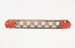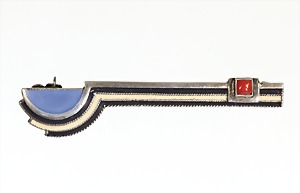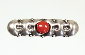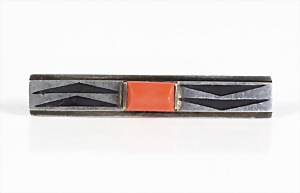 Brosche, "ART-DECO" 1920/30er Jahre, Silber 835/000, sig.: Symbol Stern mit Z, Koralle, Mattemaille, ca. 49,0 x 8,5 mm Für diesen Artikel ist ein Versand in nicht EU-Länder leider nicht möglich !