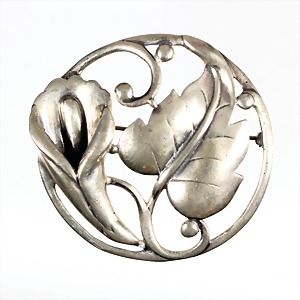Brosche, U.S.A. 1950er Jahre, Silber 925/000, sig.: DANECRAFT REG.U.S.PATT.OFF STERLING, Blüte mit Blatt, schwer gearbeitet, D = ca. 58,0 mm