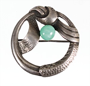 Brosche "ART-DECO" 1920/30er Jahre, Silber 935/000, sig.: 935 A.M.U., Amazonit, D = ca. 36,0 mm