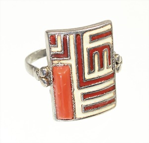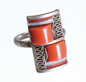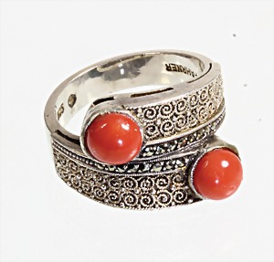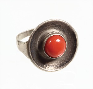 Ring, "ART-DECO" 1930/40er Jahre, Silber 835/000, Korallencabochon, RW ca. 51 Für diesen Artikel ist ein Versand in nicht EU-Länder leider nicht möglich !