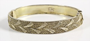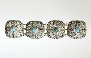 Armband "THEODOR FAHRNER" Pforzheim der 1930/40er Jahre (Filigranschmuck), Silber 925/00 verg., sig.: ORIGINAL FAHRNER TF 925 , 6 Türkiscabochons, L = 19,0 cm