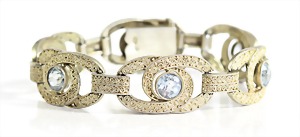 Armband "THEODOR FAHRNER" Pforzheim der 1930/40er Jahre (Filigranschmuck), Silber 925/00 verg., sig.: TF 925, 6 blaue facettierte Steine, untergebautes Kastenschloss mit Sicherheitsacht, B = 15,0 mm, L = 18,0 cm