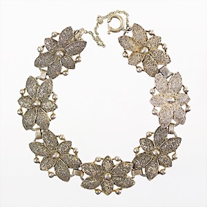 Collier-Kette, "THEODOR FAHRNER" Pforzheim der 1930/40er Jahre (Filigranschmuck), Silber 925/00, verg., sig.: ORIGINAL FAHRNER TF 925, vorne: H = 14,0 mm, L = 38,5 cm, Literatur bei Arnoldsche "THEODOR FAHRNER SCHMUCK", S. 226-229