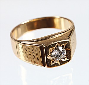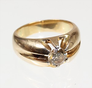 Ring 1.Hälfte 20.Jhd., GG 585/000, hellbrauner Brillant ca. 0,68-0,70 ct p, schwer gearbeitet, total 8,8 g, RW ca. 53