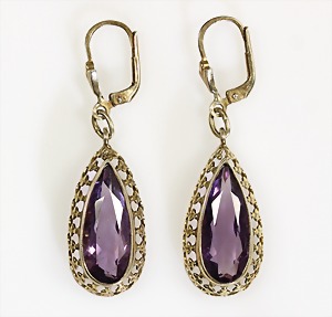 Ohrhänger, Silber 835/000 vergoldet, Amethysttropfen (7,5 x 18,0 mm), H = 43,7 mm