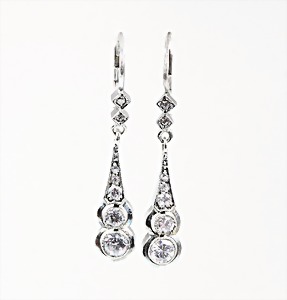 Ohrhänger "ART-DECO" 1920/30er Jahre, Silber 830/000, sig.: WB, weißer gefasster Strass, H = 37,3 mm