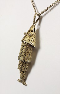 Anhänger "FISCH", China Mitte 20 Jhd., Silber verg., Körper aus fein kordierten Drähten beweglich gearbeitet, H = 78,8 mm; Kette L = ca. 50,0 cm