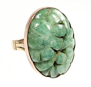 Ring 1.Hälfte 20.Jhd. "BLÜTEN", GG 585/000 (geprüft), wohl Jade (graviert), Ringkopf ca. 18,9 x 25,8 mm, RW ca. 57