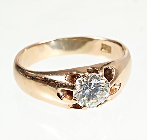 Solitärring, 1.Hälfte 20.Jhd.; RG 585/000, Brillant ca. 0,85 ct w-vvsi, RW ca. 56,5. Schöner Klassiker mit historischem Charme !