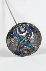 Hutnadel, "JUGENDSTIL" um 1900, Silber farbig emailliert, L = 24,3 cm