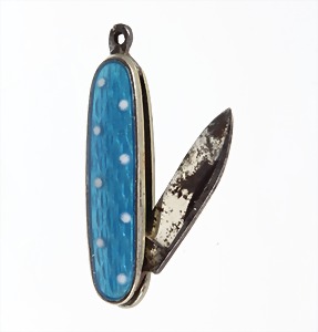 Kleines Messer, "JUGENDSTIL" um 1900, Silber, blau-weiß emailliert, L = 29 2 mm, Miniatur !!