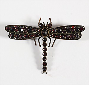 Brosche "LIBELLE" um 1880/90, böhmische Granate, ca. 52,2 x 37,0 mm
