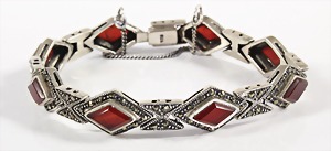 Armband im ART-DECO Stil, Silber, Carneole in Rautenform, Markasiten, Kastenschloss mit Sicherheitskettchen, L = 18,5 cm