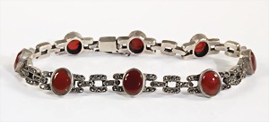 Armband im ART-DECO Stil, Silber, 7 Carneolcabochons, Markasiten, Kastenschloss mit Sicherheitsacht, L = 19,5 cm