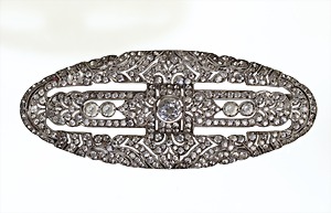 Brosche, "ART-DECO" 1930/40er Jahre, Silber 935/00, aufwändig gefasster Strassbesatz, ca. 74,2 x 29,2 mm
