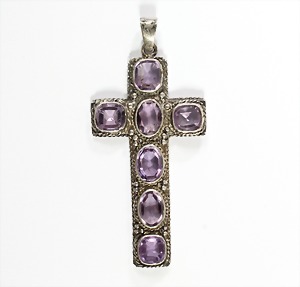 Kreuz, Silber, 7 facettierte Amethyste, H = 68,5 mm