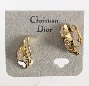 Leicht fächerförmige, zierliche Ohrclips mit klaren Strasssteinen von Christian Dior (sig.), ca. 24 x 11 mm
