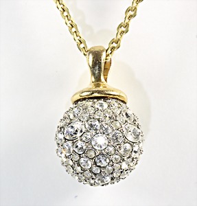 Goldfarbene Gliederkette von Friedrich Binder Mönsheim (sig. FBM) mit einem schweren, strassbesetzten Kugelanhänger, L = 80 cm, Anhänger D = 21 mm