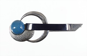 Brosche, "ART-DECO" der 1920/30er Jahre, "BENGEL" Idar-Oberstein, Metall, schwarz u. blaues Galalit; ca. 74,0 x 31,5 mm
