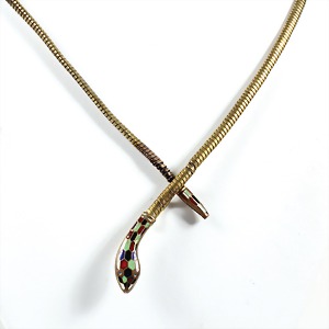Collier, "ART-DECO" 1920/30er Jahre, "SCHLANGE", Messing, Kopf u. Schwanzspitze farbig emailliert