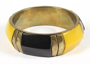 Armreif, "Art-Deco" 1930/40er Jahre, Messing, Galalit in gelb u. schwarz, innen D = 67,5 mm, B = 24,5 mm