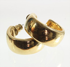 1 Paar Creolen "C. DIOR", Metall goldfarben, sig.: Chr. Dior, B = 9,1 mm, D = 21,0 mm, (3/4 Creolen mit Stift)