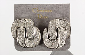Ohrclips von "Chr. DIOR", sig.: Chr. Dior GERMANY 1973, weißer Strassbesatz, ca. 22,5 x 25,5 mm