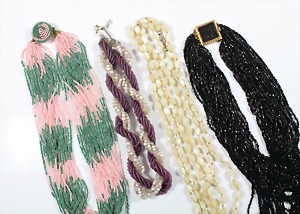 3 Ketten, "VINTAGE", mehrfarbiges Glas u. Perlmutter