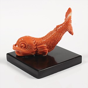 Geschnittener Korallenfisch, "KOI", 1.Hälfte 20.Jhd., mit Schiefersockel, H = 55,5 mm, Koralle total 22,6 g Für diesen Artikel ist ein Versand in nicht EU-Länder leider nicht möglich !