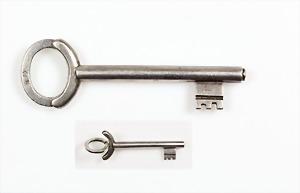 "SCHLÜSSELRING" in Form eines Schlüssels, Silber 830/000, L = 80,5 mm, kurios !