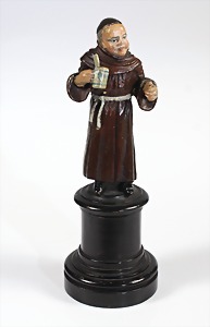 "WIENER BRONZE" um 1900/10, "MÖNCH" mit Bierkrug (Augustiner ?), farbig bemalt, Holzsockel, H = ca. 14,0 cm