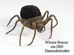 "WIENER BRONZE" um 1900, "TINTENABSTREIFER", Spinne mit Haaren im Korpus, ca. 10,0 x 12,7 cm, H = ca, 7,0 cm, ungewöhnliches Schreibutensil, selten !